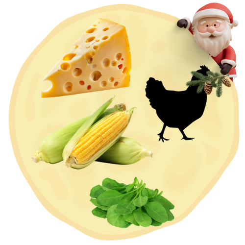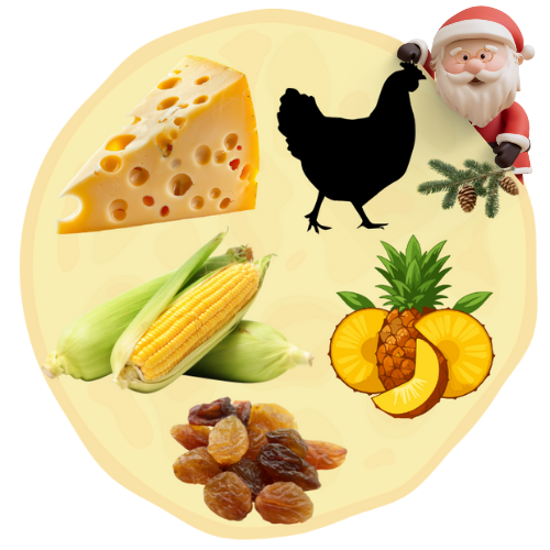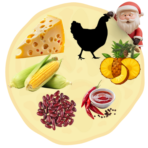 Naleśnik wytrawny z żółtym serem, kurczakiem, kukurydzą, ananasem, czerwoną fasolą i sosem papryczkowym Extra HOT. Waga z nadzieniem, około 400g lub więcej. Średnica, około 40cm.