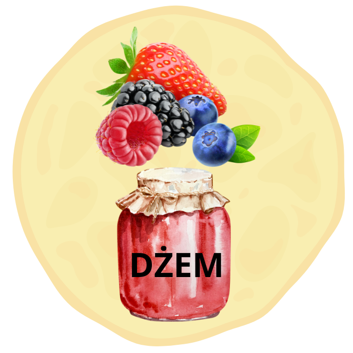 Naleśnik słodki z dżemem wieloowocowym + dodatki według uznania.Waga z nadzieniem, poniżej 300g. Średnica, około 40cm.